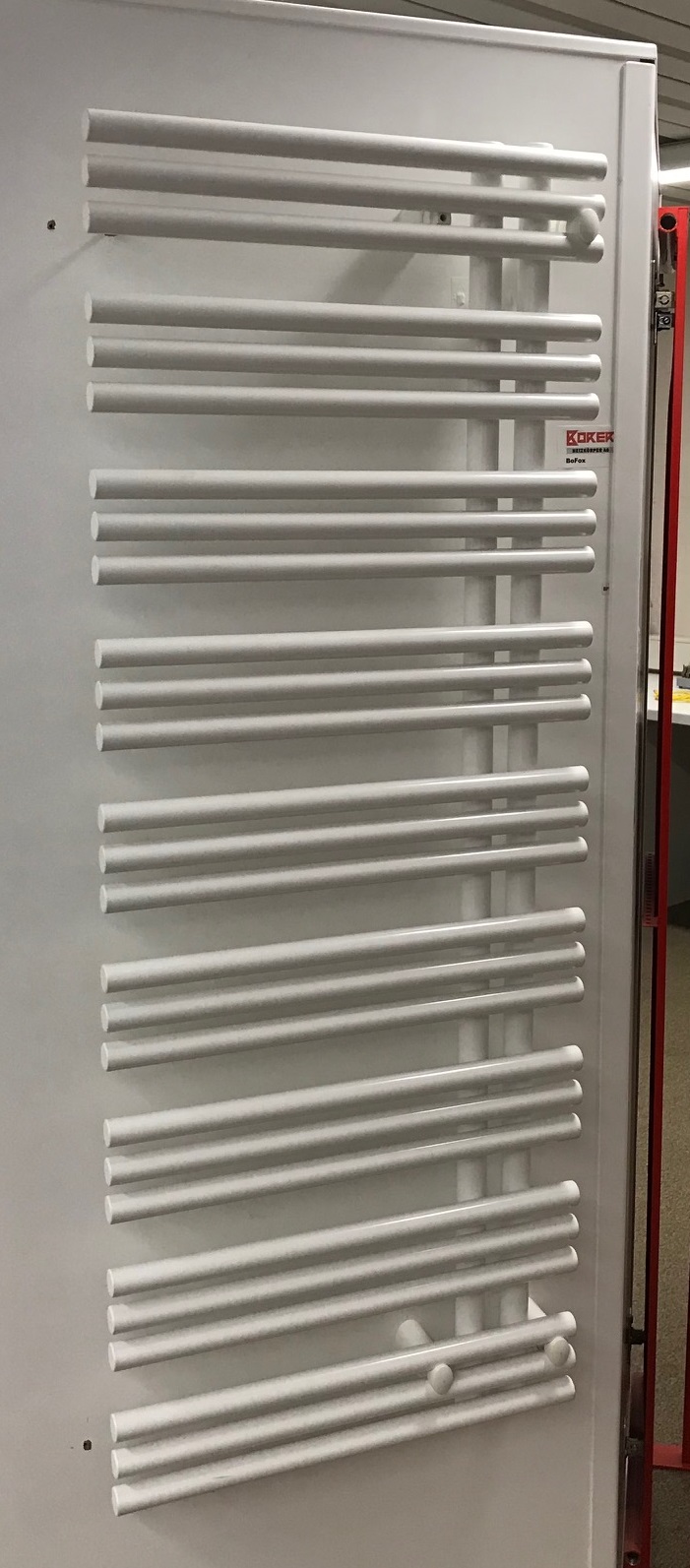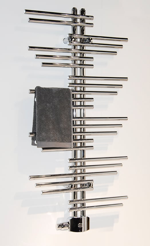 Bei Bedarf lassen sich, je nach Ausführung, ein oder zwei beheizte Segmente im Winkel von 90 Grad aufklappen, welche so als Ablage für das Trocknen der Wäsche dienen. Erhältlich ist der BoRytmo zusätzlich mit Haken zum Aufhängen der Frottierwäsche.