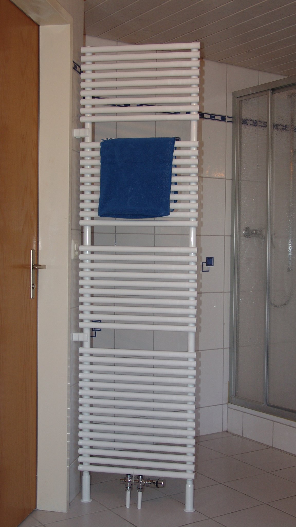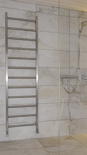 Die im Unterputz montierten, dezenten Heizelemente sorgen für wohltuende Wärme im Badezimmer sowie für trockene Frottiertücher.