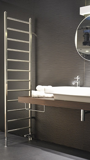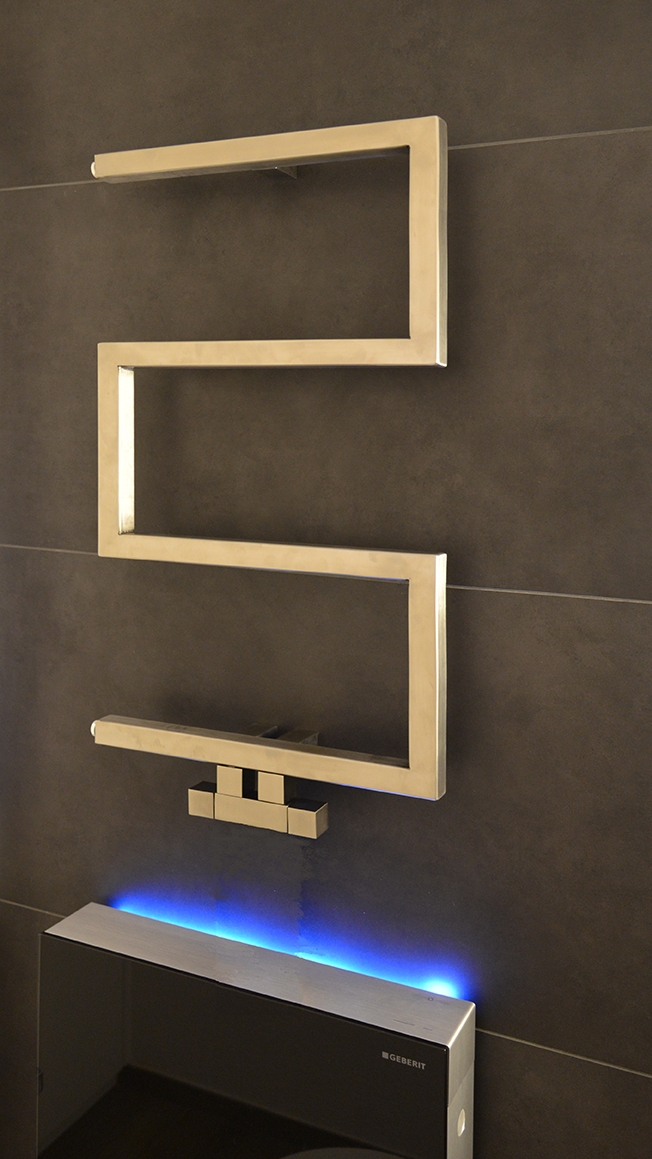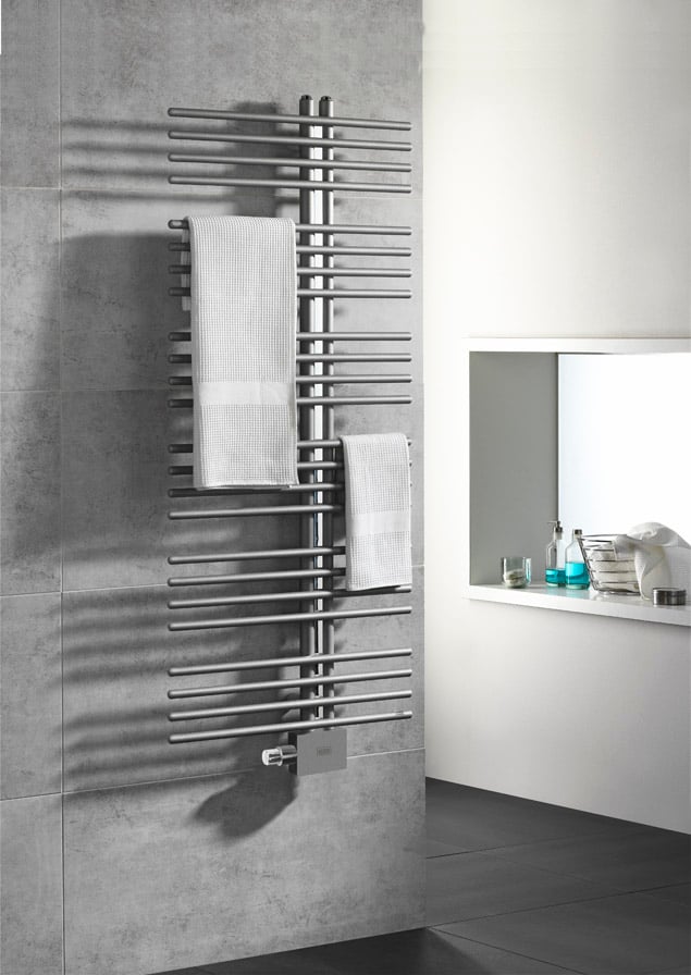 Eine Hommage an die Tradition englischer Handtuchwärmer. Einfach und robust in seiner optischen Präsenz, dabei aber stilvoll und unaufdringlich. Ein ausgewogenes Zusammenspiel aller Elemente, das der Vergangenheit genauso verpflichtet ist, wie der verwendeten innovativen Technik.